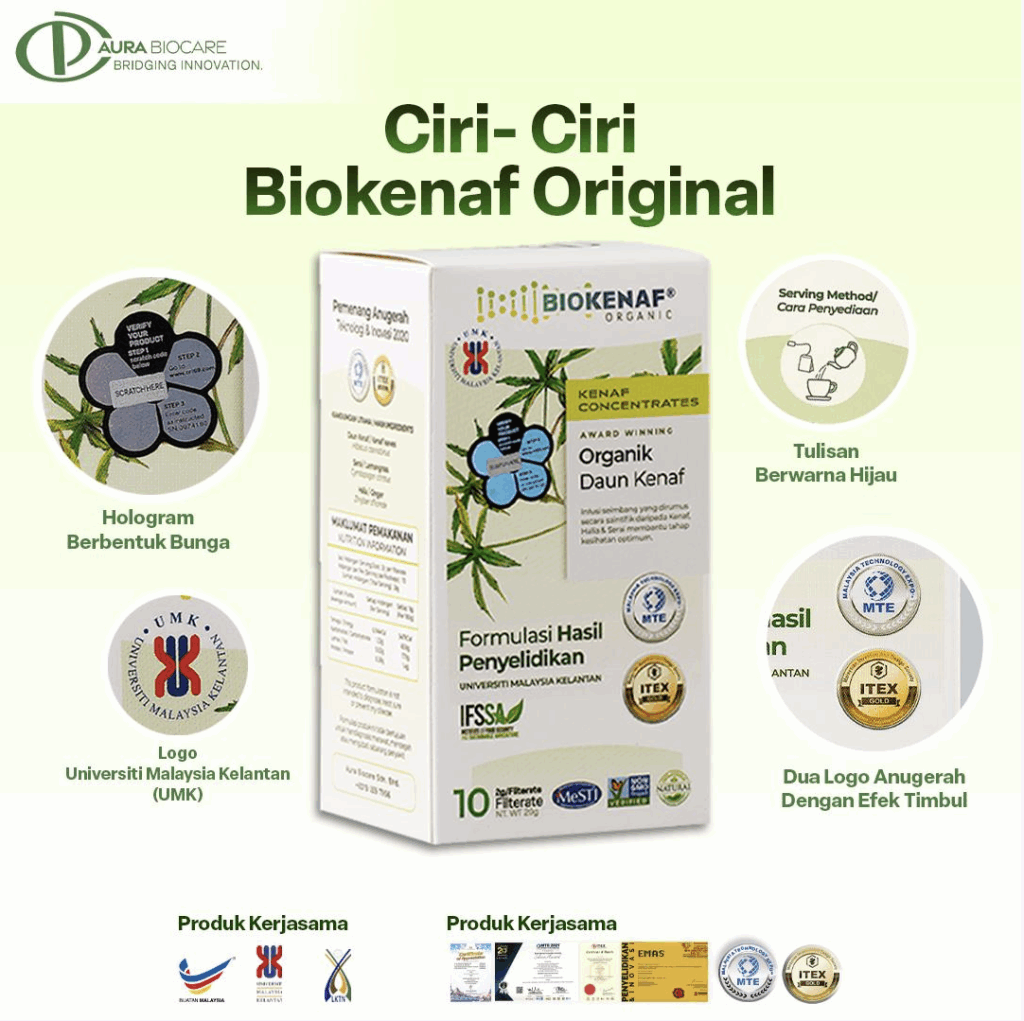 Biokenaf® mempunyai sistem hologram. Pastikan setiap kotak anda mempunyai sticker hologram.